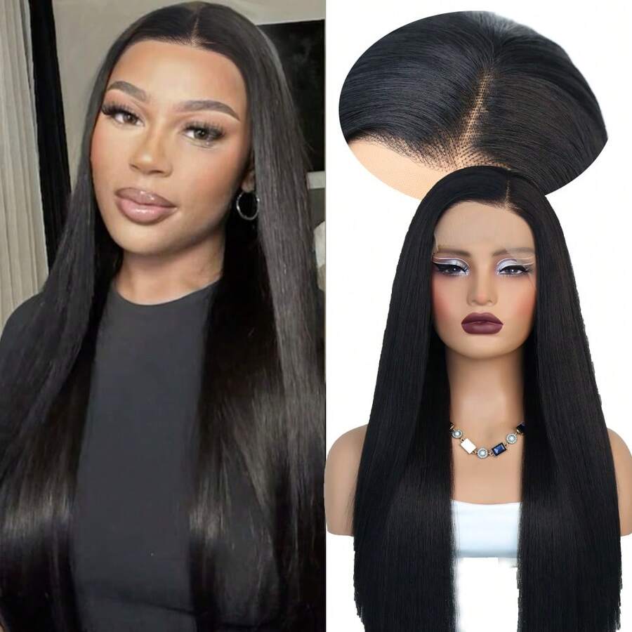 Peluca sintética de encaje frontal recto de 13x4 para mujeres, sin pegamento, con densidad del 180%, resistente al calor, adecuada para uso diario, fiestas y disfraces