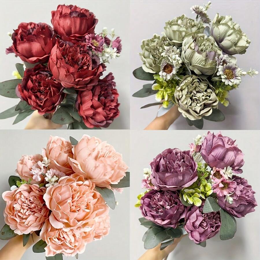 1 pieza Ramo de flores artificiales de peonía vintage con 11 tallos y 7 cabezas, adecuado para decoración del hogar, decoración festiva, arreglos florales DIY, jardín, patio, ramo de novia, decoración de boda, decoración de hotel, centro de mesa