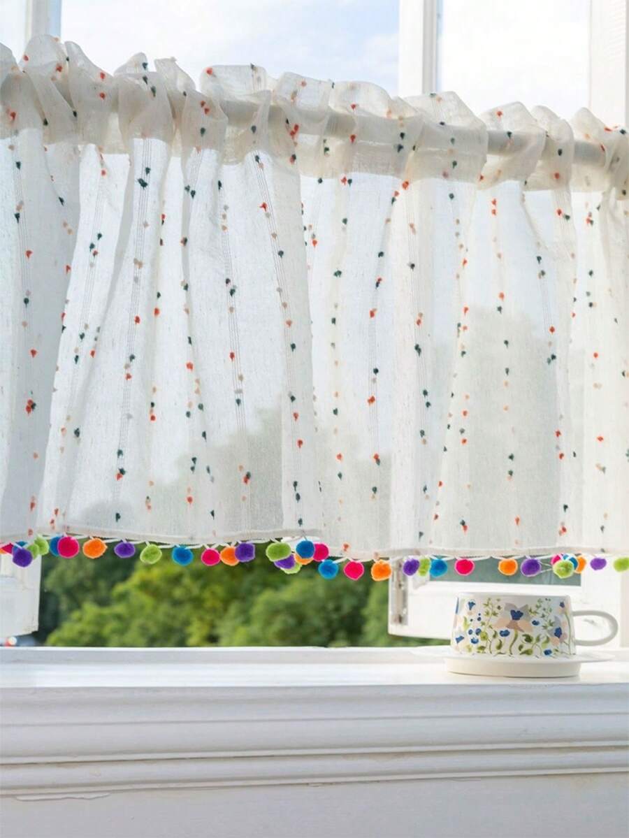 1 pieza Cortina de gasa con ribete floral doble cara con cuentas arcoíris, estilo bohemio, adecuada para decoración de cocina, baño, dormitorio, puerta de entrada y divisor de ambientes