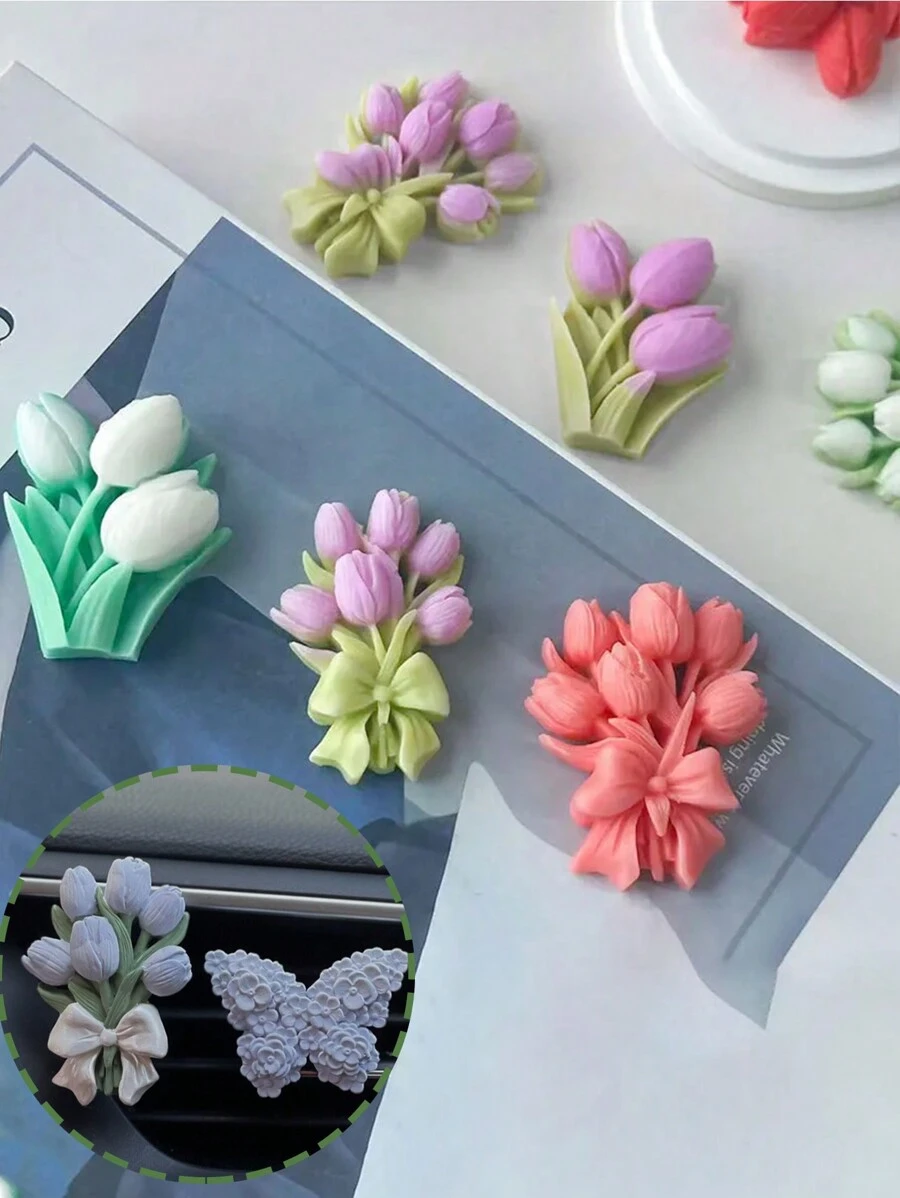 1 pieza Molde de silicona para colgante de flor Molde de silicona en forma de tulipán para chocolate, caramelos, hornear, decoración de pasteles y manualidades de velas DIY