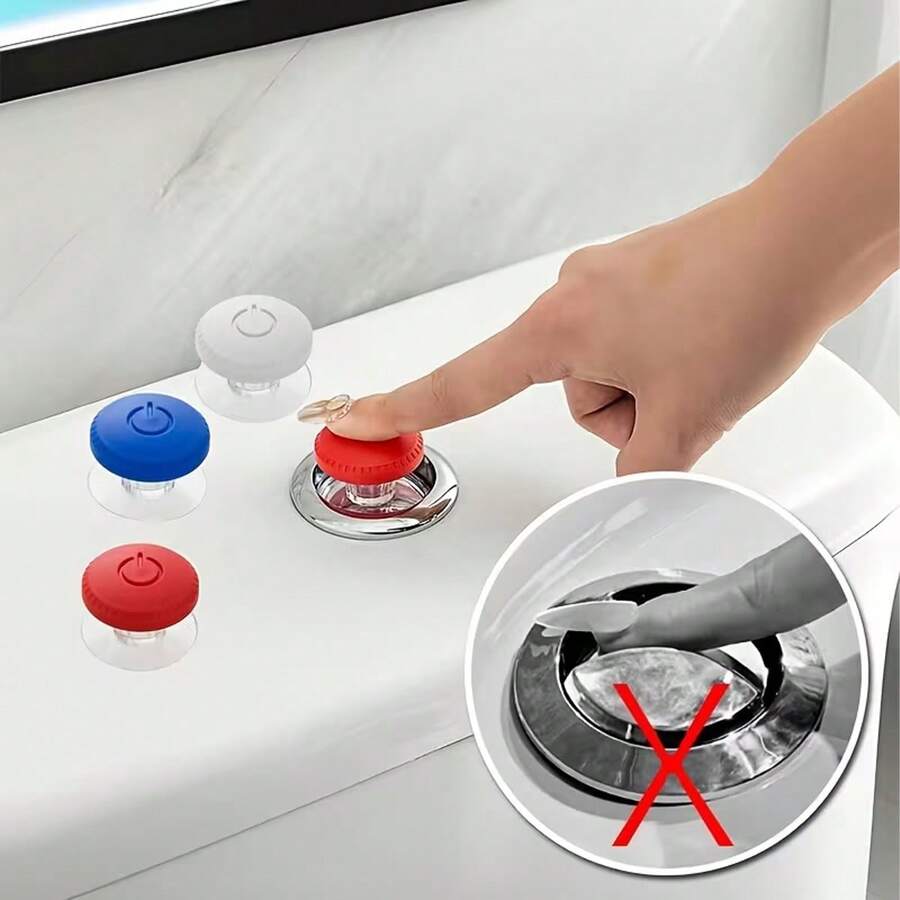 1 pieza Botón de descarga del inodoro, Manija de puerta adhesiva, Accesorio de baño creativo, Evita la rotura de uñas, Conveniente para uñas largas, Decoración de baño Accesorios de baño Herramientas de baño