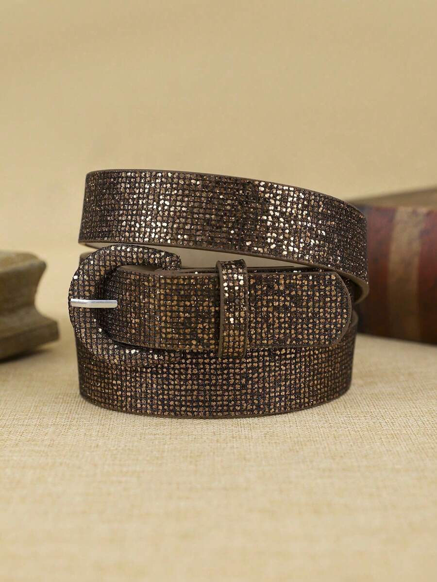 1 pieza Cinturón de mujer de PU con hebilla brillante, de estilo bohemio de moda, adecuado para uso diario en verano, escuela, otoño y Halloween