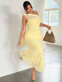 GalTymeElenzga Vestido largo de mujer talla grande con tirantes de espagueti y volantes, unicolor, elegante, adecuado para volver al colegio, graduación, San Valentín, festival de música, Día de la Madre, Halloween, Acción de Gracias, Pascua, Baile de graduación, citas, temporada de bodas, excursiones al aire libre Roveilla Vestido formal elegante y romántico para mujer de talla grande, adecuado para bodas, cumpleaños, ceremonias, vestimenta formal ligera, fiestas, de gasa, de un hombro, con abertura, vestido de noche, vestido romántico