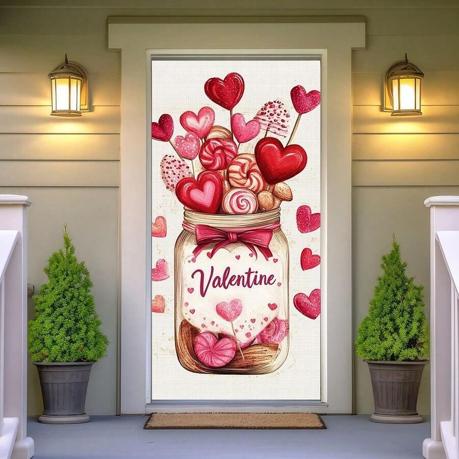 1 pieza Guirnalda en forma de corazón para el Día de San Valentín - Diseño de corazón rojo con tarro de albañil y corazones de caramelo, decoración de poliéster durable para interiores/exteriores, decoración del hogar, fiesta, sin necesidad de electricidad, telón de fondo para fotos, decoración en forma de corazón, estilo festivo