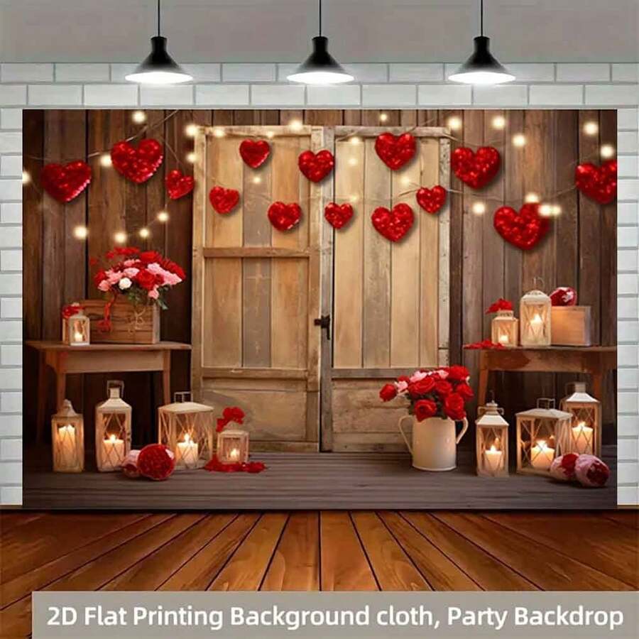 2D Plano, 1 Pieza Fondo de fotografía del Día de San Valentín con puerta de madera antigua, rosa roja y fondo floral para retrato de amantes, regalo, ducha, cumpleaños, decoración de banner
