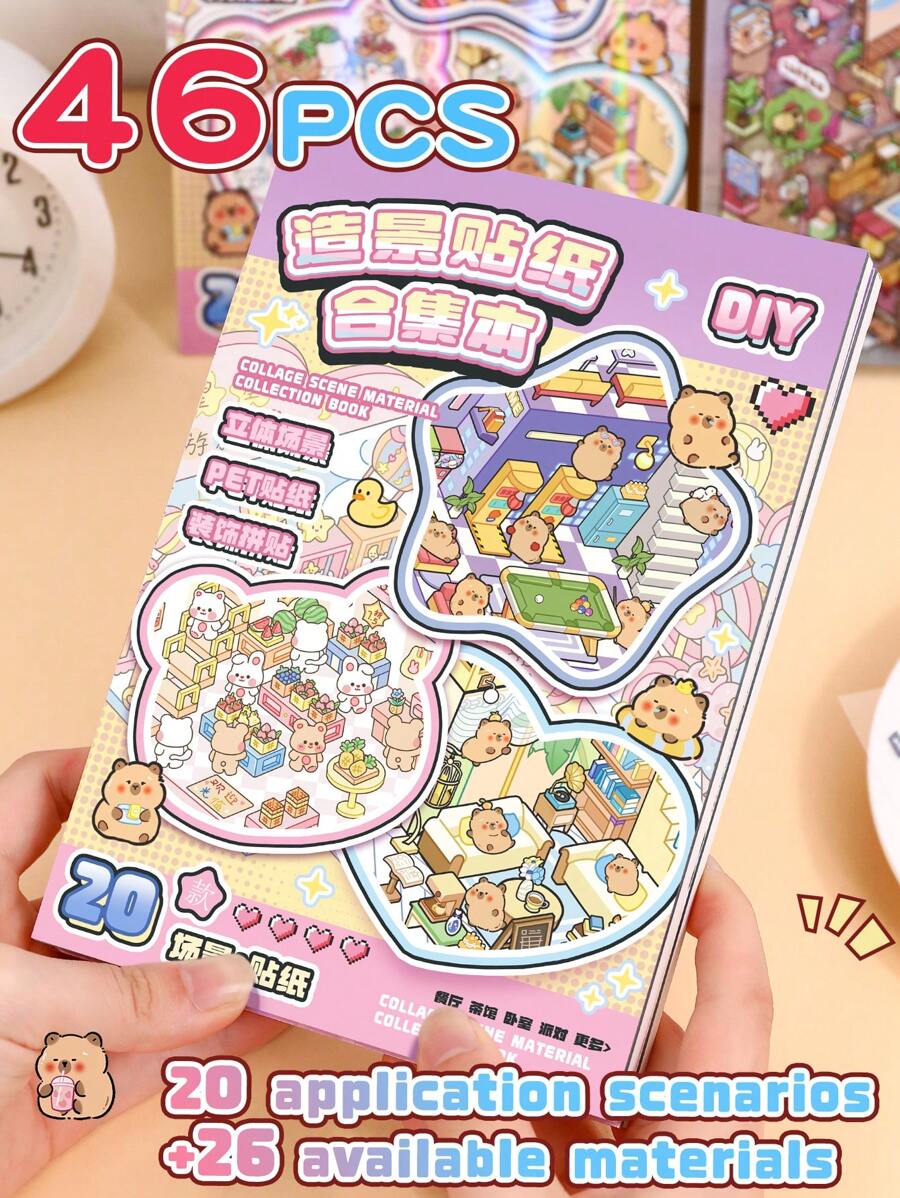 50 piezas Pegatinas decorativas DIY para casa, pegatinas de paisajismo, pegatinas de escenas (incluye 20 escenas, 26 hojas de material) Pegatinas en 3D estereoscópicas de pequeñas casas para escenas en miniatura para manualidades DIY, scrapbooking, pegatinas de paisaje, pegatinas para cuadernos, pegatinas de clasificación manual, escenas de casas pequeñas, reutilizables, disponibles en varios tamaños