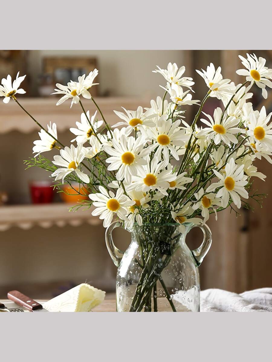 Set de 8 girasoles artificiales clásicos en color blanco, de 20 pulgadas, de plástico resistente a los rayos UV, adecuados para el hogar, el patio, la sala de estar, el jarrón, el porche, el balcón - ideales como regalos para Pascua, Acción de Gracias, Día de San Patricio, Día de San Valentín, cumpleaños, graduación, decoración de jardín, plantas de exterior, jardinería, flores artificiales