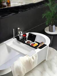 Bandeja premium para bañera, bandeja organizadora de baño, bandeja dispensadora de jabón, bandeja de lujo para baño, bandeja para el lavabo, bandeja multifuncional para el tocador, juego de tocador de baño, apto para hotel, hogar, sala de modelos, club y talla grande, de alta gama y versátil Estante multiusos para fregadero con estante de drenaje y soporte para toalla de cocina - No se necesita electricidad, almacenamiento para esponjas, jabón, cepillos, paños, accesorio para fregadero de cocina, organizador de paños de cocina, diseño compacto, fácil de limpiar, plástico duradero, esponja Bandeja de bañera extensible y telescópica, estante de almacenamiento multifuncional para el baño, estante de drenaje para el hogar, adecuado para velas, toallas, libros, vino, teléfono, ducha, accesorios de baño, decoración de habitaciones Bandeja de madera de forma ovalada, tamaño pequeño/mediano/grande, bandeja organizadora adecuada para perfumes, velas, champú, gel de baño, accesorios, plantas, baño, tocador, inodoro, regalo para el Día de la Madre, Día del Padre, Pascua, regalo para familia, amigos, colegas