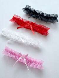 1 pieza Accesorio de mujer con lazo, corazón, cadena de pierna con campana, liguero de muslo de encaje, collar, gargantilla, cadena de clavícula, accesorio de pierna, adecuado para entretenimiento, vida nocturna, actuaciones artísticas, citas en pareja, estilo bohemio sexy, poliéster, primavera/verano/otoño/invierno