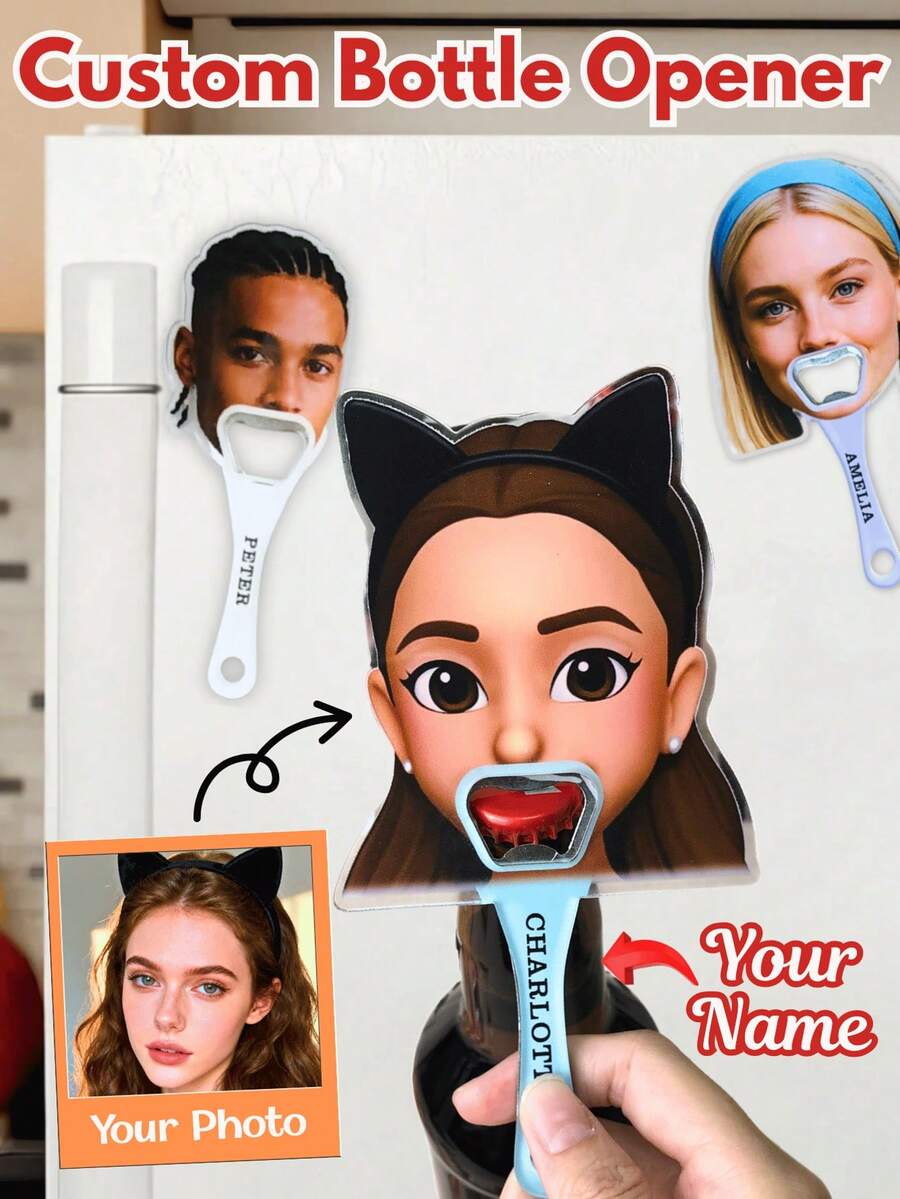 Abridor de botellas con diseño personalizado de rostro, abridor de botellas de cerveza, abridor de botellas con imán adjunto que se puede adherir al refrigerador. Sirve como un regalo decorativo para restaurantes, bares, fiestas y bodas, un regalo ideal para el Día del Padre, un imprescindible para bodas. Es multifuncional, altamente decorativo y reutilizable.