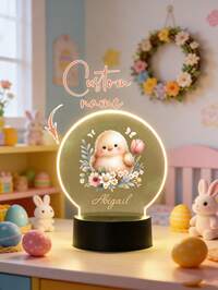 1 pieza Luz de noche LED personalizada, con nombre personalizado, diseño redondo con patrón lindo, decoración personalizada para habitación y hogar, iluminación para decoración festiva, mejor regalo personalizado para el Día de San Valentín, Pascua, cumpleaños, bautizo, Día del Niño, fiesta