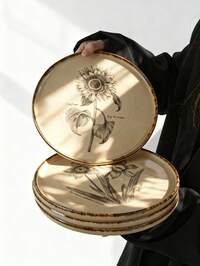 CirelleCirelle Plato de cena de cerámica con crisantemo retro, elegante plato blanco para desayuno, pan, bistec, pasta, fruta, ensalada, pastel, vajilla para el hogar y restaurante | Juego de cena, platos, plato, plato de cerámica, platos blancos, platos de cena 50/25/12/2 piezas Juego de vajilla, base rosa con borde dorado, incluye platos de cena, platos de ensalada, platos de postre y tazones de ensalada lavables, fácil de limpiar. Adecuado para decoración de bodas, decoración navideña, fiesta de cumpleaños, reunión familiar, actividades al aire libre, escuela, restaurante y fiesta de cocina, también un regalo ideal para el hogar/escuela en vacaciones