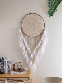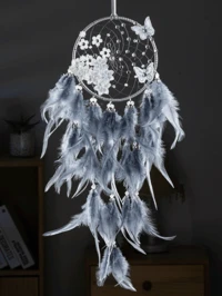 1 pieza Atrapasueños decorativo de plumas y perlas de imitación, ornamento colgante de estilo Mori con plumas, regalo para niñas, cumpleaños, útil como decoración de coche, habitación, hogar, fiesta de boda (plumas artificiales), decoración del hogar, decoración de habitación, decoración de pared para graduación