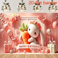 Cubierta de puerta plana 2D de Pascua, arco de puerta azul y verde, rayas verticales rosa y azul, conejo de dibujos animados lindo, lazo azul, corona de flores rosa y azul, tulipanes rosas, flores azules, margaritas blancas, hojas verdes, enredaderas, decoración de pared, decoración de fiesta festiva, decoración del hogar, decoración del porche exterior, fiesta de jardín, regalo festivo, material de poliéster, sin necesidad de energía, adecuado para celebraciones interiores y exteriores