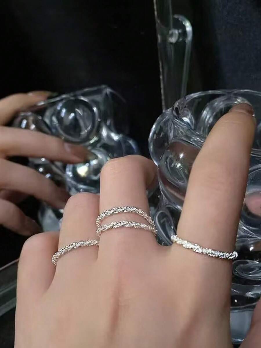 Anillos de plata de color con destellos para mujeres y niñas, de estilo coreano simple, versátil y decorativo, anillos para el dedo índice, joyería