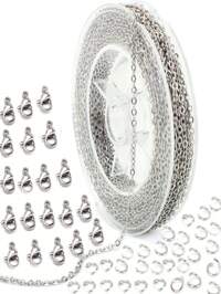 Bijoux JewelrySet de 3 piezas de cadena de hierro chapada en cobre de 17-33 pies (5-10 m) de 1.5-2.2 mm, cadena de hierro soldada y chapada en cobre, con 10 broches de langosta y 20 anillas abiertas, disponible en longitudes de 5 m y 3 m, para hacer joyas DIY, regalos festivos (9 colores: oro, oro rosa, oro KC, plata, blanco K, negro mate, negro electrodepositado, bronce antiguo, cobre antiguo) - El color de los accesorios puede variar