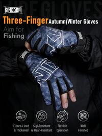 Kingdom FishingKINGDOM Guantes de tres dedos de Reino para otoño/invierno, guantes para deportes al aire libre, pesca, ciclismo, bicicleta, camping, senderismo, sin dedos, cálidos, antideslizantes, resistentes al desgaste, impermeables, a prueba de viento, transpirables, con retención de calor constante, ideas de regalo de invierno