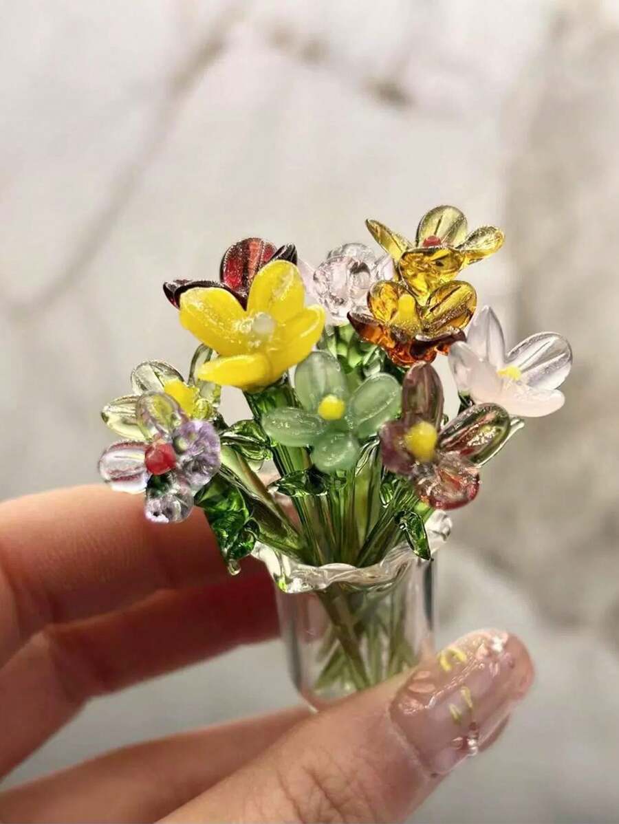 Florero de vidrio para decoración, pequeño florero con lirio de cala y tulipanes artificiales, regalo de ramos de flores de vidrio hechas a mano (con ligera variación de color y tamaño), adecuado para el Día de San Valentín, el Día del Padre, el Día de la Madre, el Día del Maestro, Pascua, Día del Niño, Día de la Mujer