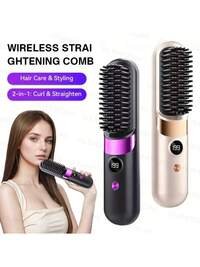 Cepillo alisador de cabello inalámbrico portátil, calentamiento rápido, apto para todo tipo de cabello, diseño anti-quemaduras, pantalla LED digital, recargable, ligero y portátil, apto para uso doméstico y de viaje, diseño de mango elegante, herramienta de peinado profesional, regalo ideal para mujeres, regalo de Navidad