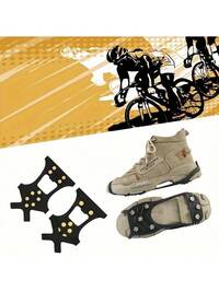 2 pares de cubiertas de zapato duraderas y antideslizantes con 10 clavos metálicos - Ideales para ciclismo, senderismo y tracción en la nieve al aire libre - Accesorios de zapato lavables de goma sintética negra, clavos de pedal antideslizantes, para montañismo y pedales de bicicleta