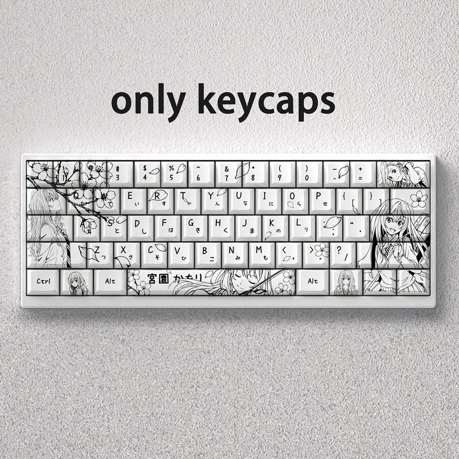 Teclas Kaori - Teclas lindas con contorno de cereza - 73 teclas - Material PBT tintado por sublimación de 5 lados - Adecuado para teclados mecánicos de 60/65/68 - Altura estándar - Estilo minimalista - Diseño de arte lineal