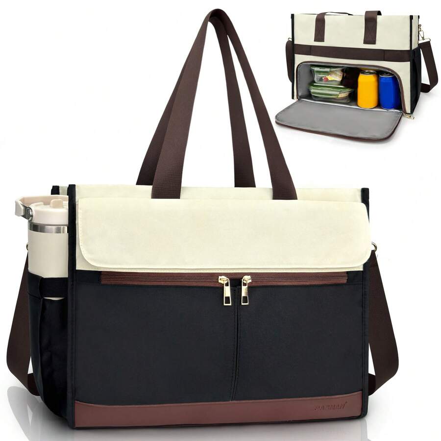 Bolsa de almuerzo para mujeres con compartimento para portátil de 15.6", bolsa de tote aislada, bolsa de tote impermeable de trabajo con bolsillos laterales de 40 oz, bolsa de regreso a la escuela, bolsa de accesorios escolares, bolsa refrigeradora, accesorios de picnic, lonchera escolar