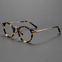 Gafas redondas con montura de titanio vintage que bloquean la luz azul, gafas con montura completa de estampado de leopardo, unisex para todas las estaciones