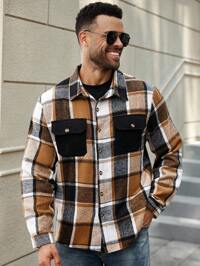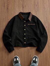 EASEVOChaqueta camisa de pana para hombre de talla grande, chaqueta casual de hombre de tela de pana con diseño de cuello de solapa, cierre de botones, manga larga, diseño de bolsillos dobles, adecuado para uso diario casual, moda, minimalista, ir al trabajo, estilo callejero, uso en primavera y otoño, ¡gran regalo para hombres!