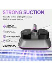 WZmingruiTeckwe 1 pieza Aspiradora inalámbrica portátil para eliminar ácaros con filtración HEPA, succión potente de 10kPa, luz UV, bajo nivel de ruido, larga duración de batería de 1200mAh, fácil de usar, color blanco, gris o rosa, ideal para mascotas, hogar, dormitorio, sala de estar, alfombras, camas, colchones y sofás, limpieza profunda y reducción de alérgenos.