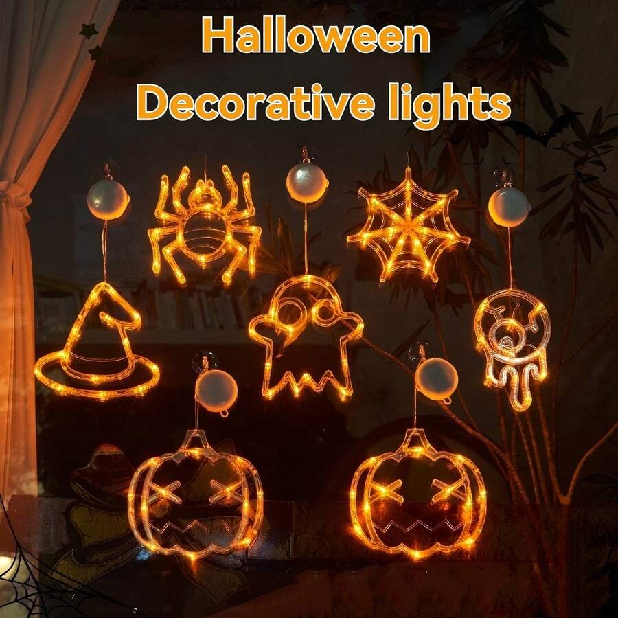 Luces LED de ventana de diseño múltiple para Halloween - Juego de decoración con ventosas y batería, con calabazas naranjas, arañas, ojos de fantasma y sombreros de bruja para crear una atmósfera espeluznante en interiores/exteriores. Decoración para Halloween, Navidad, Acción de Gracias, bodas, hogar, otoño, cumpleaños, fiestas, jardín, festivales y adornos de Halloween.