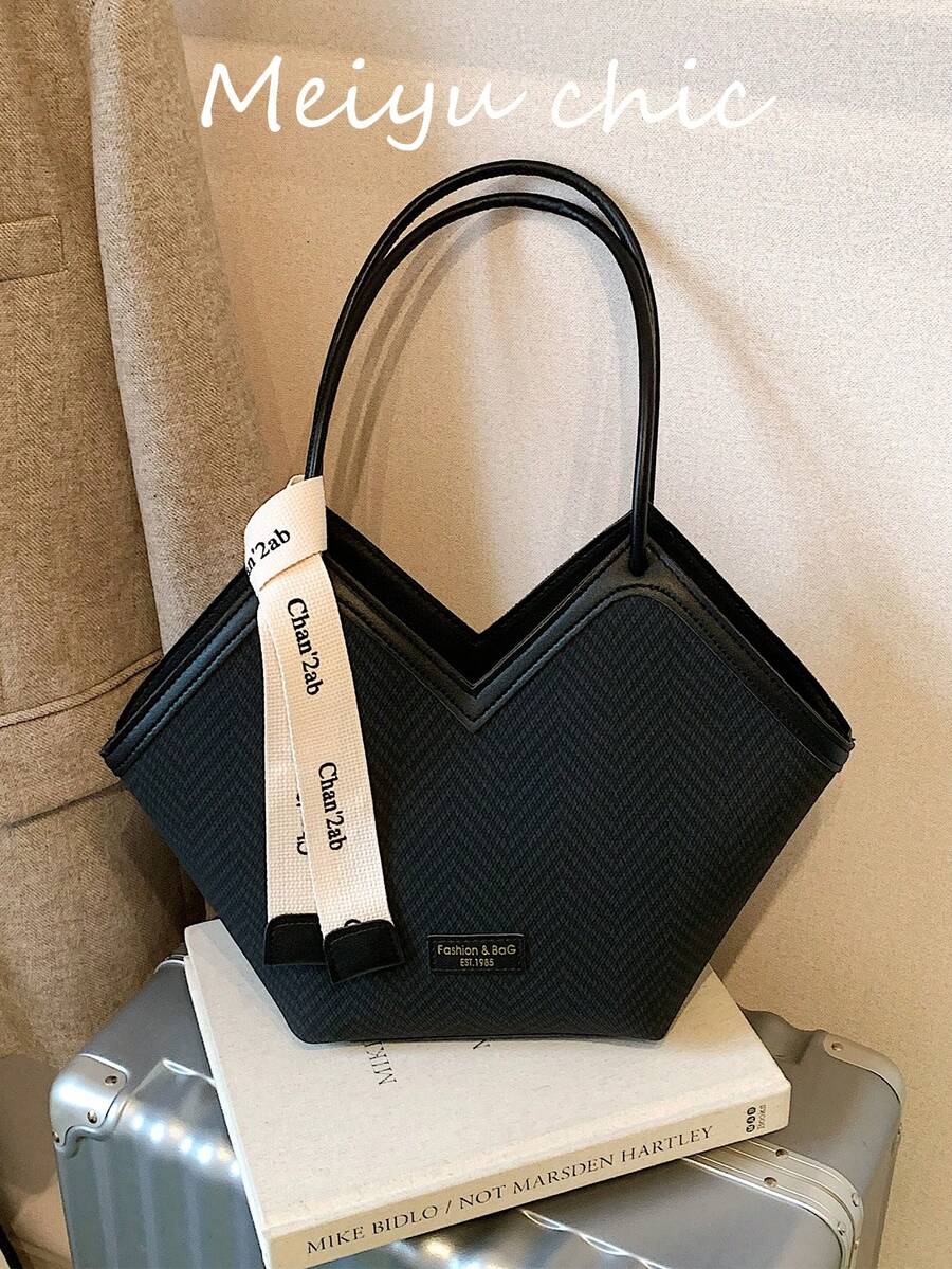 Nueva bolsa de hombro tipo tote de gran capacidad con diseño de bloques de color, diseño acanalado y doble asa, adecuada para viajes, compras y uso diario, decorada con un patrón de pañuelo, elegante cartera de mujer, cartera para uso diario en el trabajo