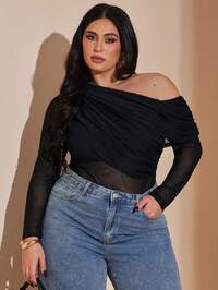 SHEIN BAE CURVESHEIN BAE Body asimétrico de manga larga con cordones y transparencias para mujer de talla grande, adecuado para cóctel, cita romántica, capa base de otoño/invierno, fiesta, reunión formal, body de malla, 4 de julio para curvas, atuendos de vacaciones para mujer, atuendos de cumpleaños para mujer, atuendo de aeropuerto para mujer, vestido de invitada de boda para mujer, 4 de julio para mujer, ropa de verano para mujer, atuendos sexys de club para mujer, atuendos de festival rave, atuendos sexys de club para mujer, graduación