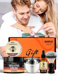 Crema de afeitar suavizante para hombres en 3 segundos - Sin alcohol, apta para piel sensible, previene los vellos encarnados y los cortes, hidratante, aroma fresco, cuidado de la barba y el vello, accesorios de afeitado, diseño de barra, fórmula sin alcohol, afeitado suave, ingredientes naturales, aseo masculino Goiple 160g Crema de afeitar profesional para hombres, jabón de afeitar suave, gel de afeitar hidratante y suavizante, mantiene la piel fresca y limpia, nutre la piel seca, espuma rica, alivia el estrés del afeitado, crema de afeitar suave, set de afeitado, brocha de afeitar, aceite para barba, bálsamo para barba, regalo perfecto para el Día de San Valentín, novio, padre, esposo, adulto, regalo de cumpleaños, set de 1/2/3/5 piezas (5.64 Oz)