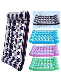 Cama flotante inflable a rayas, hamaca de agua, cama de agua, tumbona flotante, adecuada para piscina, vacaciones acuáticas y ocio, hamaca inflable para piscina - Tumbona flotante para adultos a rayas, ideal para vacaciones, fiestas y relajación, hamaca para exteriores, esencial para playa y piscina, se puede usar con funda impermeable para teléfono, excelente para fotografía acuática, juguete de piscina, esencial para camping y exteriores, necesidad de viaje, regalo divertido Cama flotante para adultos, cama flotante inflable, cama flotante con reposacabezas, adecuada para playas, lagos, piscinas, camas flotantes para tomar el sol, silla flotante portátil, para viajes, piscina, jacuzzi, lago, vacaciones en la playa, silla de red flotante para adultos azul/rosa, artículos esenciales de playa, accesorios de playa