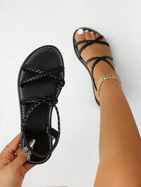 Nuevas sandalias planas de moda tipo slip-on, estilo romano de verano con punta abierta, correa trenzada sin respaldo, sandalias planas cómodas de verano, adecuadas para uso diario, diseño de punta abierta de moda, buena transpirabilidad, versátiles sandalias casuales, adecuadas para combinar con cualquier atuendo, cómodas sandalias planas con tira cruzada de moda y sencillas, sandalias negras, sandalias beige de playa y resort, sandalias caqui, sandalias verdes, sandalias negras, resistentes al desgaste, antideslizantes, ligeras y cómodas Nuevas sandalias de dedo tipo flip flops con tira cruzada para adolescentes, de color negro y blanco en contraste, suela plana, adecuadas para estudiantes, de moda, casuales, de dedo abierto, de dos colores, para vacaciones, fiestas, con diseño de gladiador, antideslizantes, duraderas, con puntera redonda