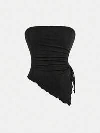 RomweezyCamiseta informal personalizada para niñas preadolescentes, de tela de punto negro y blanco, con tirantes y bajo asimétricos, adecuada para viajes, vacaciones, caminatas, salidas, se puede combinar con pantalones, shorts, faldas, chaquetas