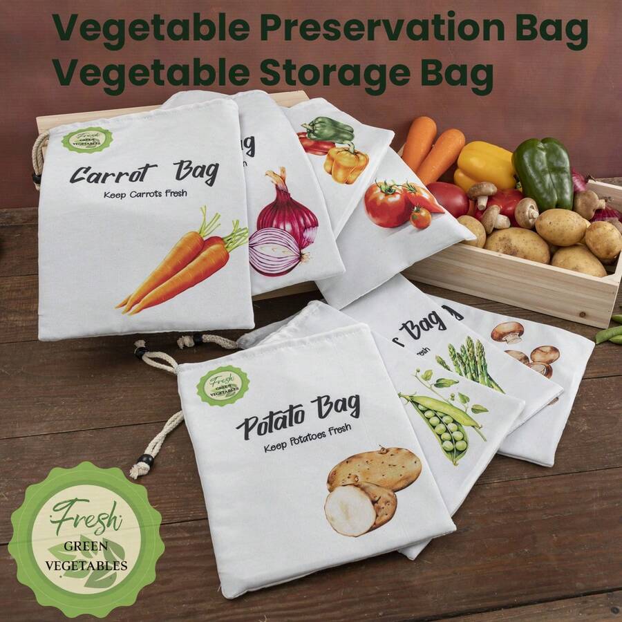 Bolsas de almacenamiento de verduras, bolsas de frescura de verduras, bolsas de almacenamiento de patatas, cebollas, zanahorias y otras verduras. Bolsas de embalaje de verduras verdes. Almacenamiento y recolección de verduras para el hogar, bolsas de almacenamiento y embalaje de verduras para viajes, campamentos, fiestas y comida para llevar