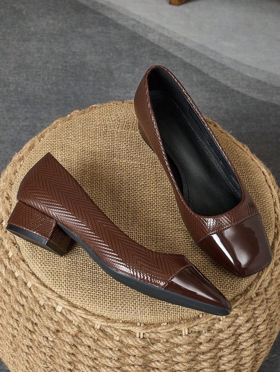 Bombas con tacón de bloque, puntera cuadrada, textura de piedra y sin cordones, estilo de parchwork, para mujer, adecuadas para vacaciones, viajes, al aire libre, casual, vintage, verde, de alta gama