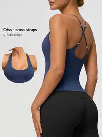 MUSERAMusera Sport Sujetador deportivo con busto fruncido, espalda abierta y cuello halter, color sólido, para otoño, invierno, actividad física, gimnasio, entrenamiento, ocio, pádel, fitness