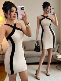SoleiaSoleia Nuevo vestido mini con cuello en V texturizado y cuentas, adecuado para fiesta, cita, San Valentín, Pascua, carnaval, té de la tarde, vacaciones en la playa, crucero, calle de la ciudad, estilo bohemio, romántico floral, vacaciones, floral SHEIN BAE Vestido mini sexy de espalda descubierta con tirantes cruzados, cuello cuadrado y color rosa claro liso, adecuado para citas diarias, salidas nocturnas, discotecas, fiestas, reuniones, fiestas en la piscina, ropa de vuelta al colegio, vestidos de vacaciones para mujer, ropa de festivales de música, festivales de música country, ropa de conciertos