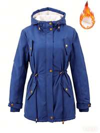 CavvaOutdoorCavva Chaqueta con capucha acolchada para mujer, a prueba de viento, ligera, acolchada, con forro, con cremallera, casual, ropa de invierno cálida con 4 bolsillos, para senderismo, camping, trabajo, forro polar