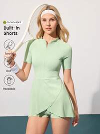 DewberaDewbera Vestido deportivo de tenis para mujer, blanco con empalme de color contrastante en los lados, tirantes ajustables, panel del pecho de color contrastante, con forro y bolsillos desmontables de pantalones cortos, adecuado para uso casual, correr, yoga, gimnasio, tenis, golf