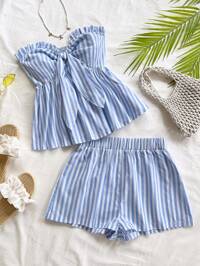 SHEIN MOD Conjunto de 2 piezas para mujer con lunares: top con dobladillo asimétrico y falda de cola de pez de cintura baja con decoración de lazo, retro, vintage, conjunto de verano de dos piezas, para invitada de boda, vacaciones, cumpleaños, concierto de country, concierto de mujer, boho, conjunto de dos piezas para vacaciones, atuendo de Hawai para mujer, conjunto de salida a brunch para mujer
