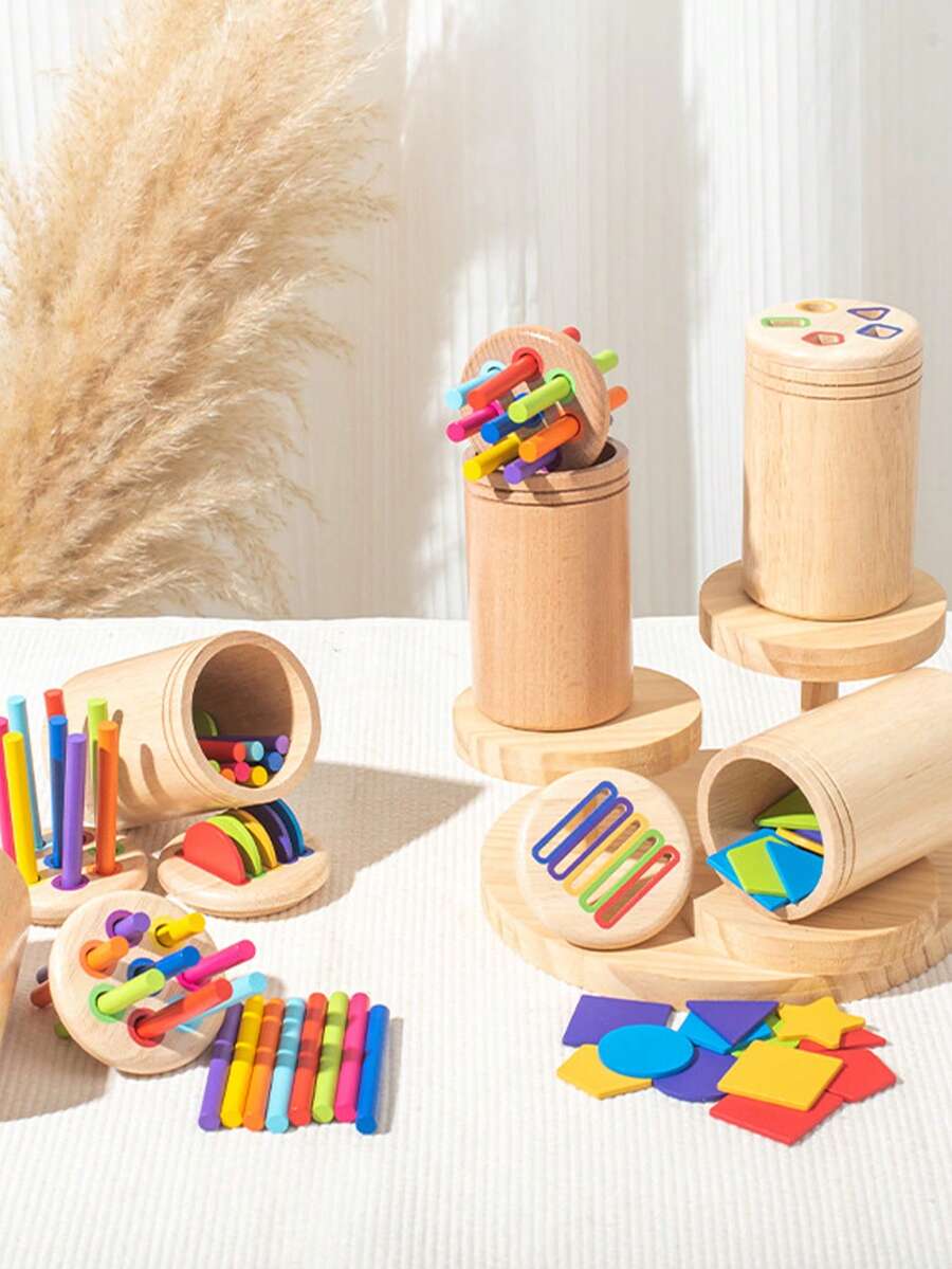 Vasos de clasificación de colores del arcoíris de madera con palitos codificados por color - Juguete de aprendizaje sensorial, ayuda con la coordinación mano-ojo, el reconocimiento de números y la identificación de colores