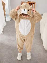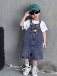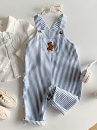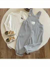 PipplinSHEIN Peto de tirantes con bordado de oso lindo y rayas para niños, mono cómodo y versátil casual para todo uso, adecuado para interior, exterior, uso diario, deportes, juego, fiesta, festival, Halloween, Navidad, Año Nuevo, primavera/otoño