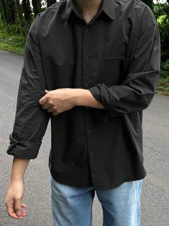 DAZY Camisa básica casual de color negro sólido para hombres