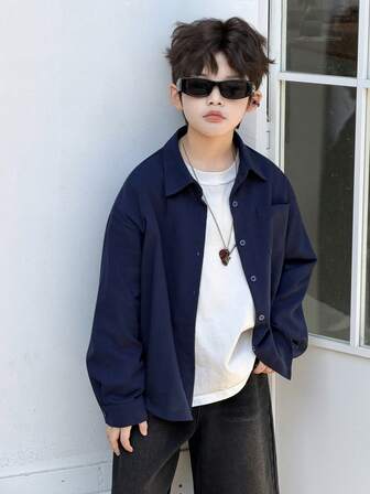 DAZY Camisa de manga larga con botones delanteros de unicolor informal para niño preadolescente, otoño