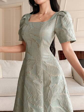 DAZY Vestido de verano de mujer con cuello cuadrado, mangas abultadas y estampado floral elegante