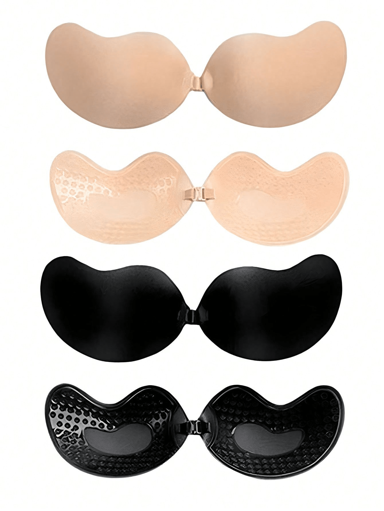 paquete de 4/2/1 sujetador adhesivo de silicona sin espalda con push up, sujetador invisible, reutilizable, con broche delantero, realce de busto - Copa transpirable y amigable con la piel, talla de la copa A-D, apto para vestidos de novia/vestidos sin espalda de verano
