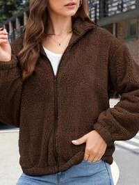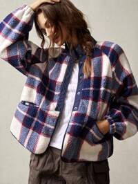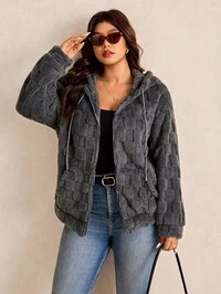 SHEIN PETITE CURVESHEIN PETITE CURVE Chaqueta corta de felpa de manga larga a cuadros para mujer de talla grande, para otoño e invierno, chaqueta de mujer, chaquetas de mujer para otoño, tops para salir, franelas para mujer, casual de negocios para mujer, chaqueta a cuadros, invitada de boda, brunch de invierno de talla grande, casual de talla grande para otoño